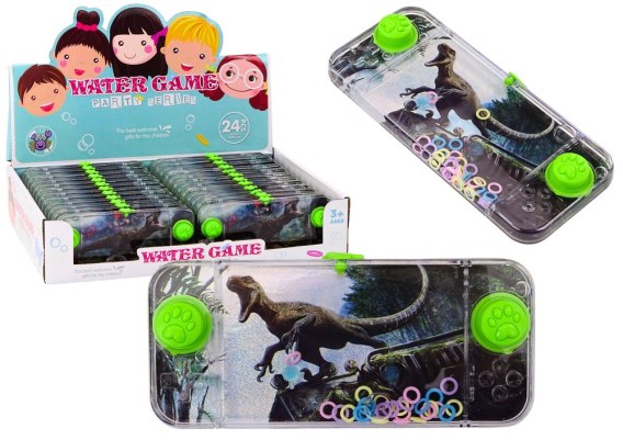 To klasyczna wodna gra zręcznościowa z motywem dinozaura, często spotykana w formie niewielkiej, prostokątnej zabawki. Jej mechanizm jest prosty, ale bardzo wciągający. Gra ma kształt prostokąta, co sprawia, że jest wygodna do trzymania w dłoniach.  Po prawej i lewej stronie urządzenia znajdują się dwa zielone przyciski, są kluczowe do gry i są łatwo dostępne dla palców gracza. W środku gry, w przezroczystym zbiorniku wypełnionym wodą, znajdują się kolorowe obręcze. Są one swobodnie unoszące się wewnątrz cieczy. W dolnej części gry wystają dwa szpice, na które należy nadziać obręcze. Szpice te są celami, do których gracz musi trafić obręczami.