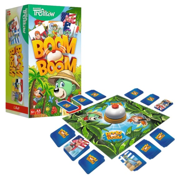 W nowej odsłonie gry Boom Boom Rodzina Treflików gracze starają się zebrać identyczne karty z ulubionymi bohaterami z serialu Rodzina Treflików. Wszyscy gracze w tym samym czasie wymieniają karty z ręki z kartami znajdującymi się na planszy. Po zebraniu zestawu 4 takich samych kart gracz uderza w dzwonek, sygnalizując innym wykonanie zadania. Gracze mogą polować na karty przeciwników - kto okaże się najszybszy? Gracz, który jako pierwszy zbierze odpowiednie stosy takich samych kart, zostaje zwycięzcą!
