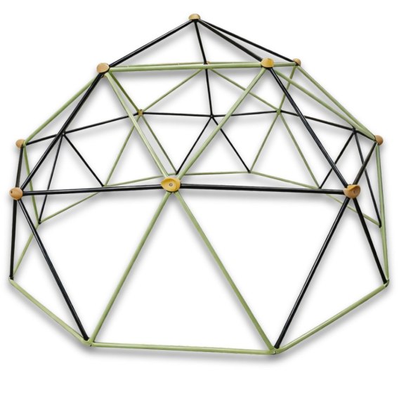 Kształt kopuły sprawia, że konstrukcja jest stabilna i nie wymaga dodatkowego kotwienia w podłożu. Można ją ustawić na trawie, piasku lub innej płaskiej powierzchni, tworząc bezpieczny i funkcjonalny plac zabaw w ogrodzie.