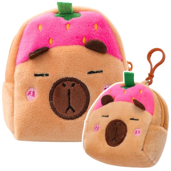 Uroczy pluszowy portfelik w kształcie kapibary z motywem różowej truskawki to idealny dodatek dla dzieci oraz miłośników słodkich, miękkich akcesoriów.