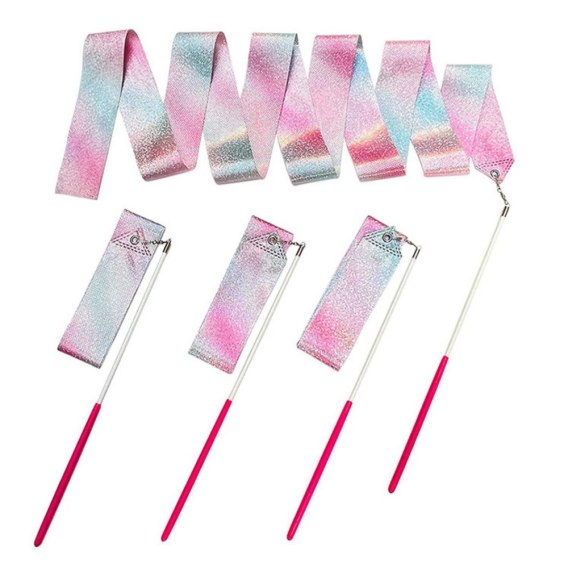Wstążka Gimnastyczna Do Tańca Ćwiczeń Róż Fiolet Błękit Błyszcząca 205x5cm