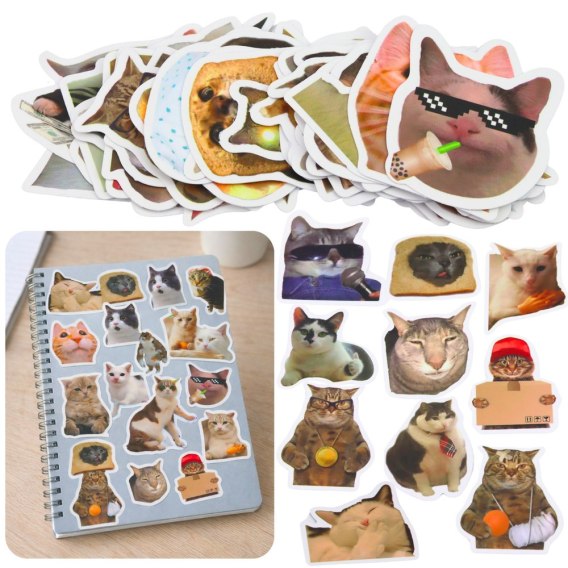 Zestaw Naklejki Koty Memy Dekoracyjne Różne Motywy 50 szt. 7-8 cm